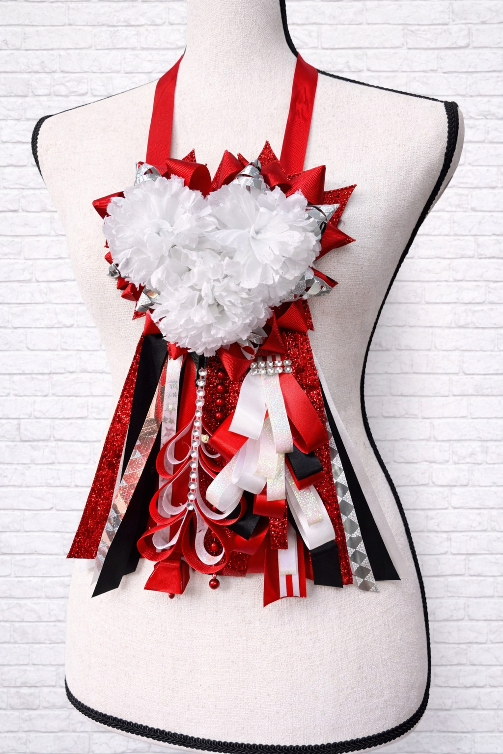 Shapes could include Texas/Bow/large heart, large star, butterfly, etc: as many mum flowers as it takes to cover your design! Choose your 6 specialty braids, 6 custom cutouts, Feather Boa or non-feather boa, Lights in the mum head, Lighted name plate, mascot cutout , "Class of __" ribbon with flowers, plush)