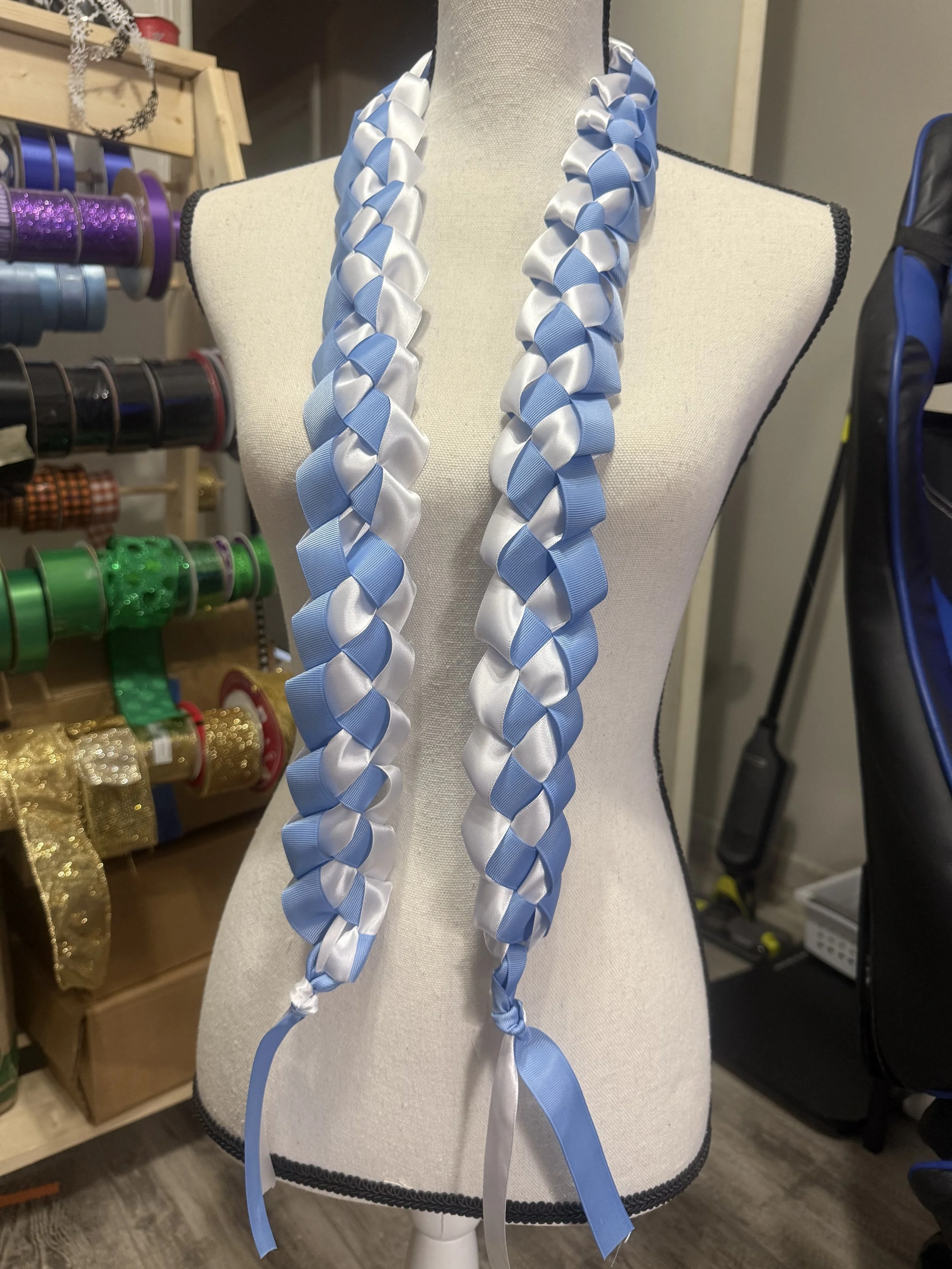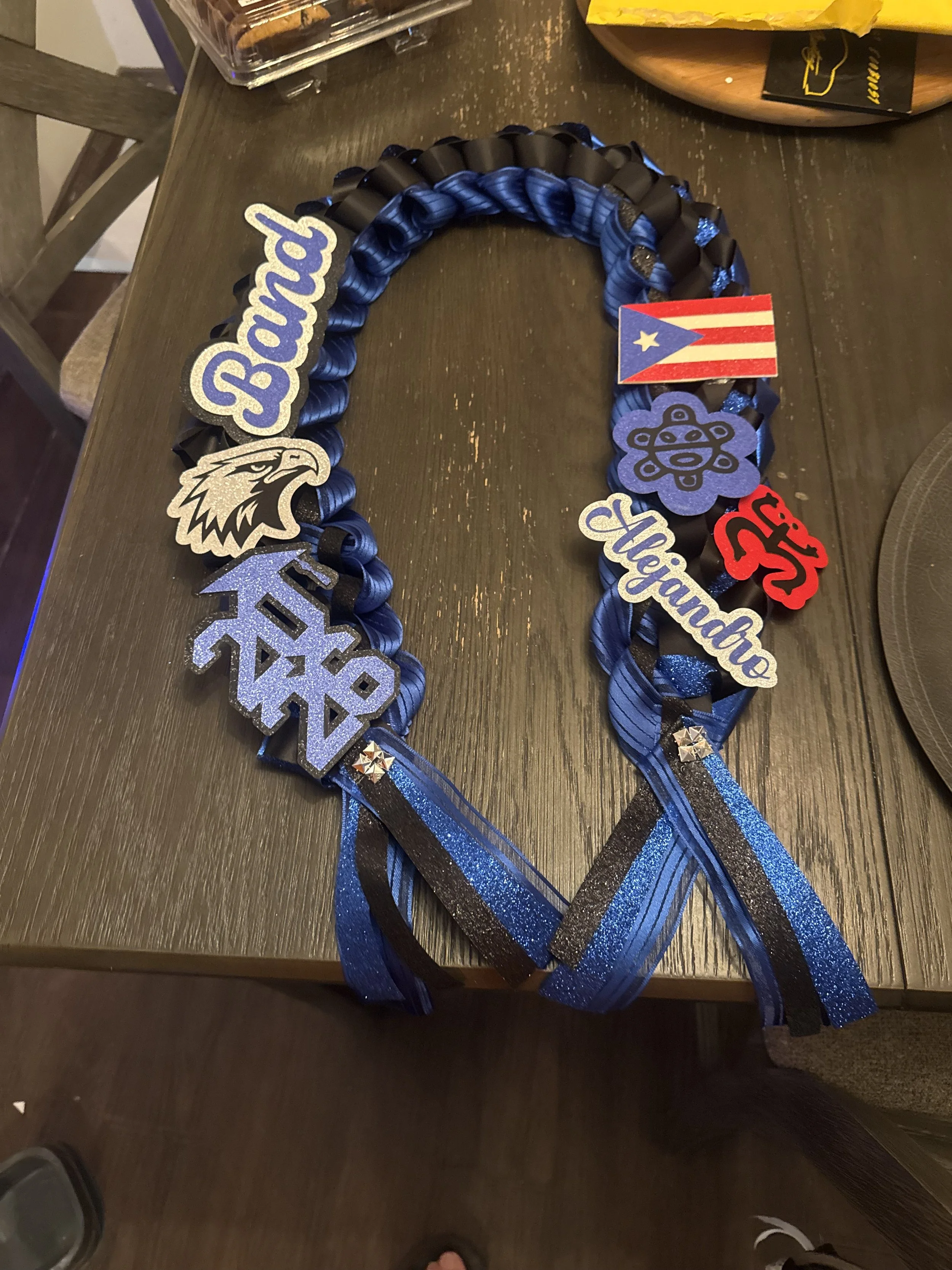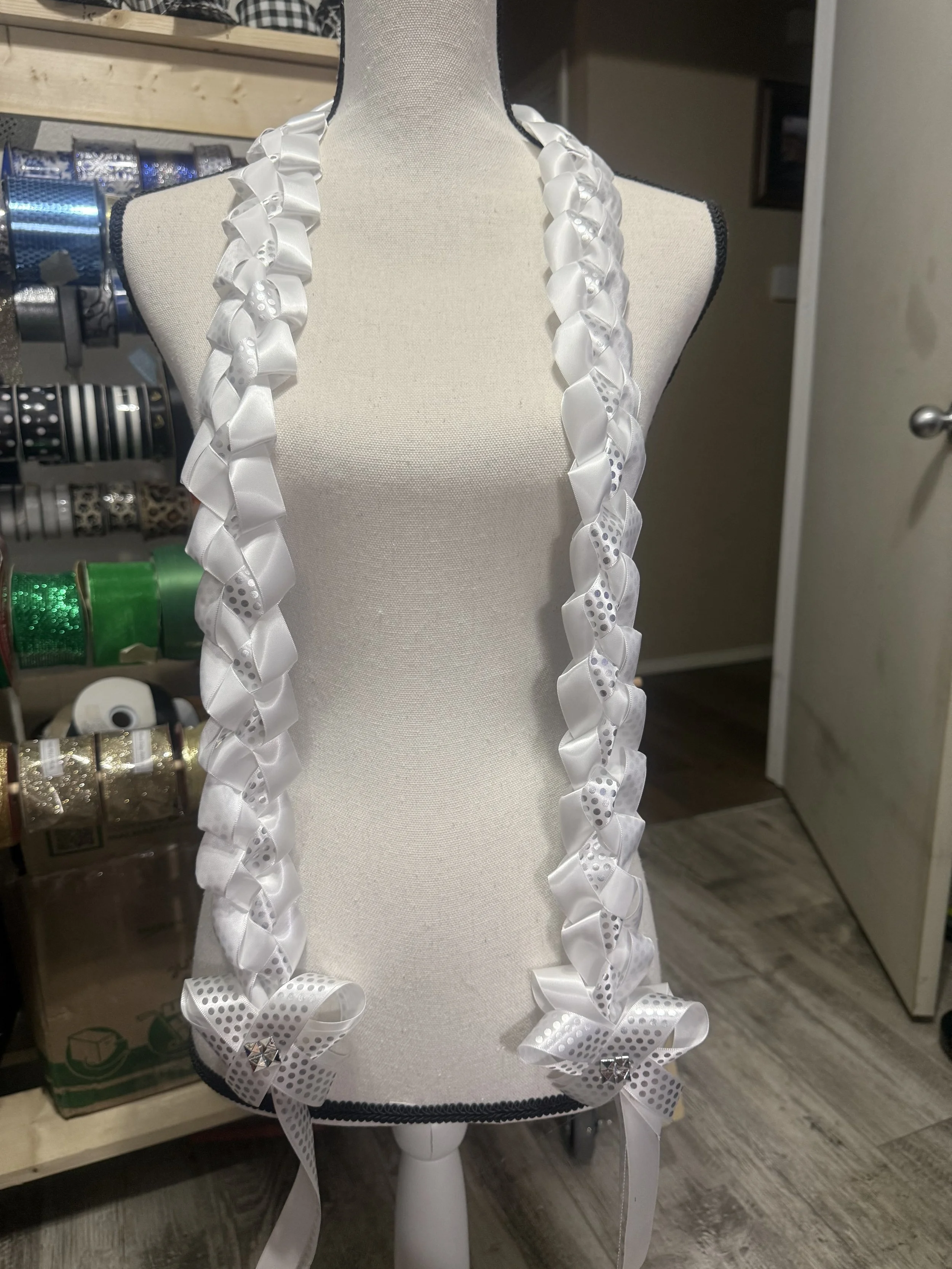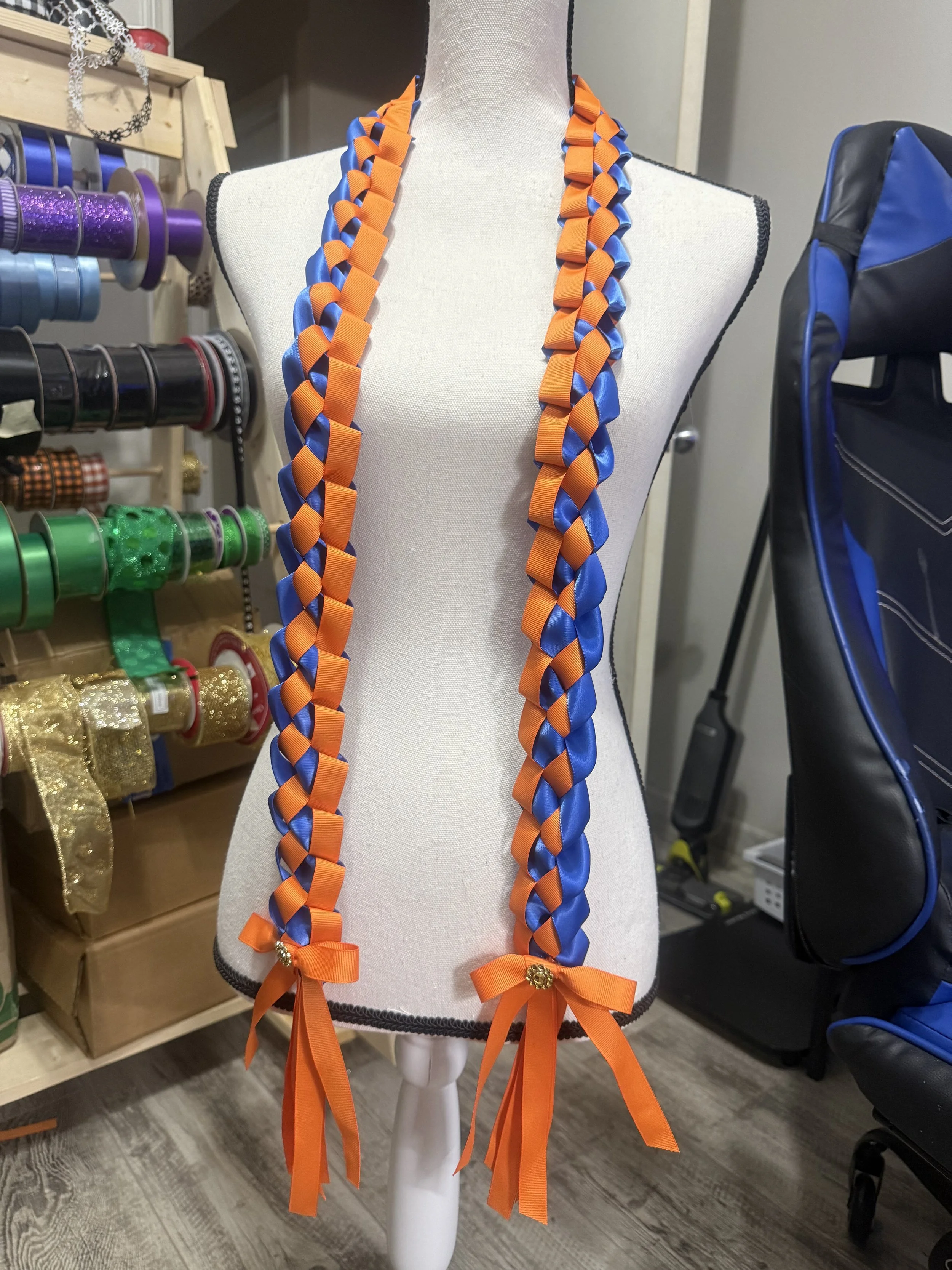Senior Leiz are an exquisite way to honor your high school or college grad! Available in Single and Double military braid, I will then add custom cutouts to showcase achievements, future plans, or any unique designs you’d like! I’ve even seen some done in complete themes of favorite childhood movies. Base price includes Braid, Bling accents, 2 cutouts on Single/ 3 on Double. Add more cutouts for $2 per cutout!