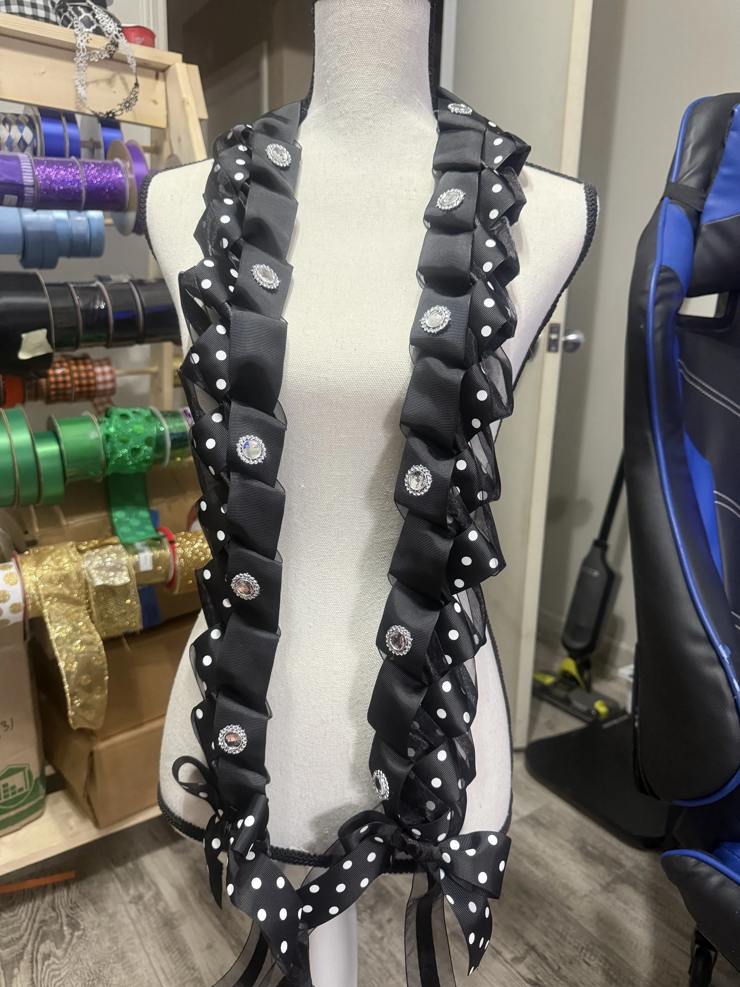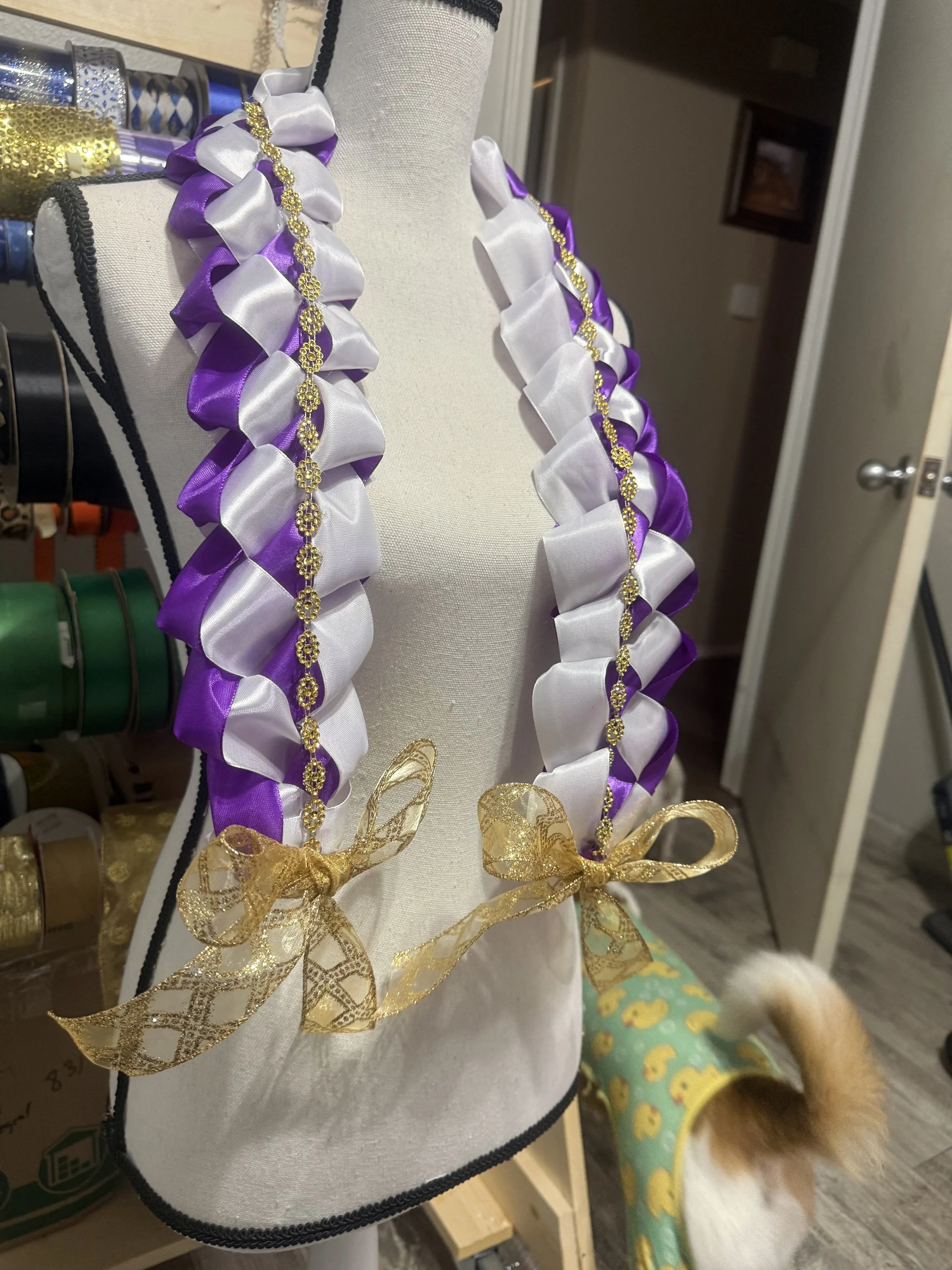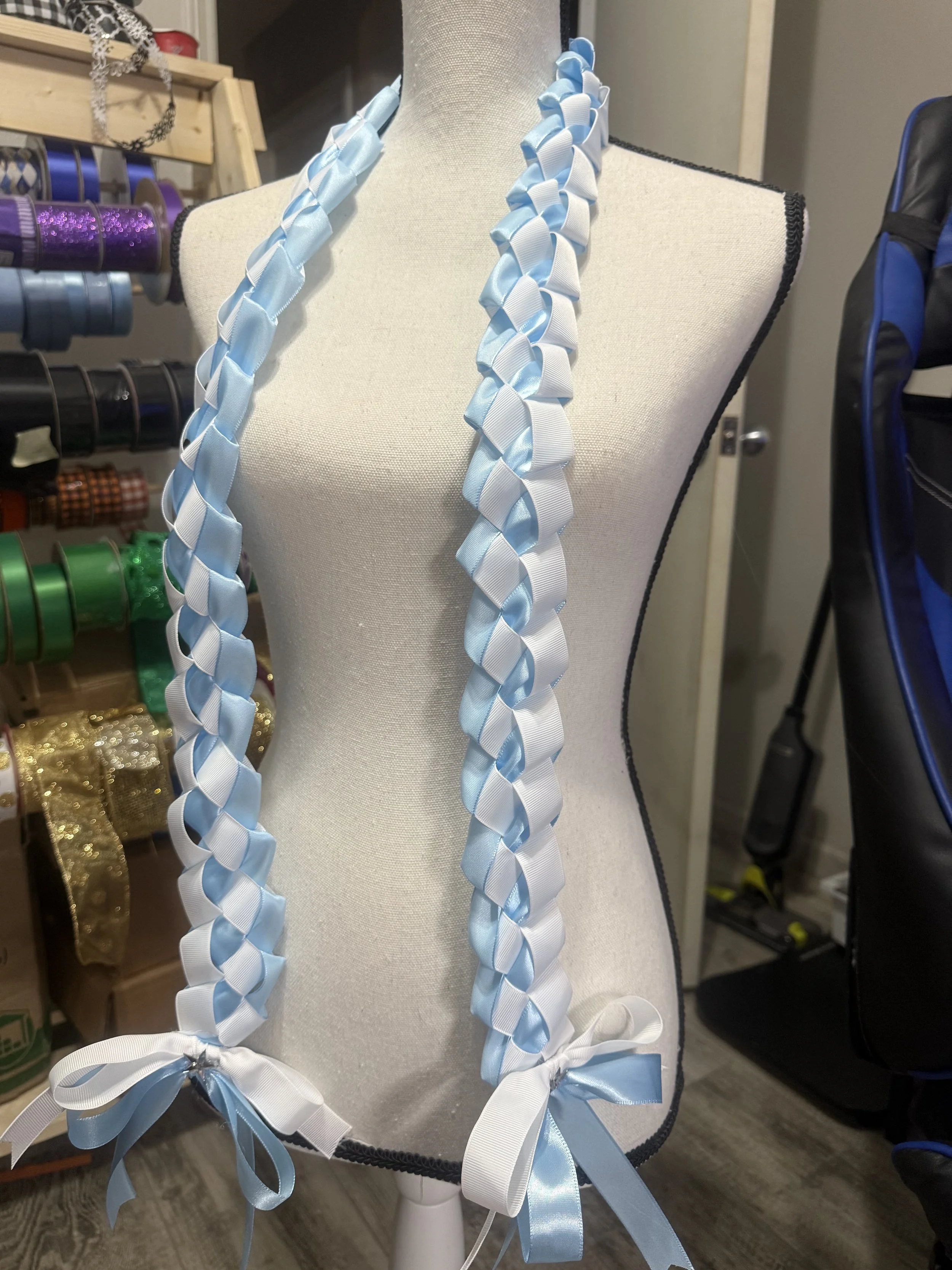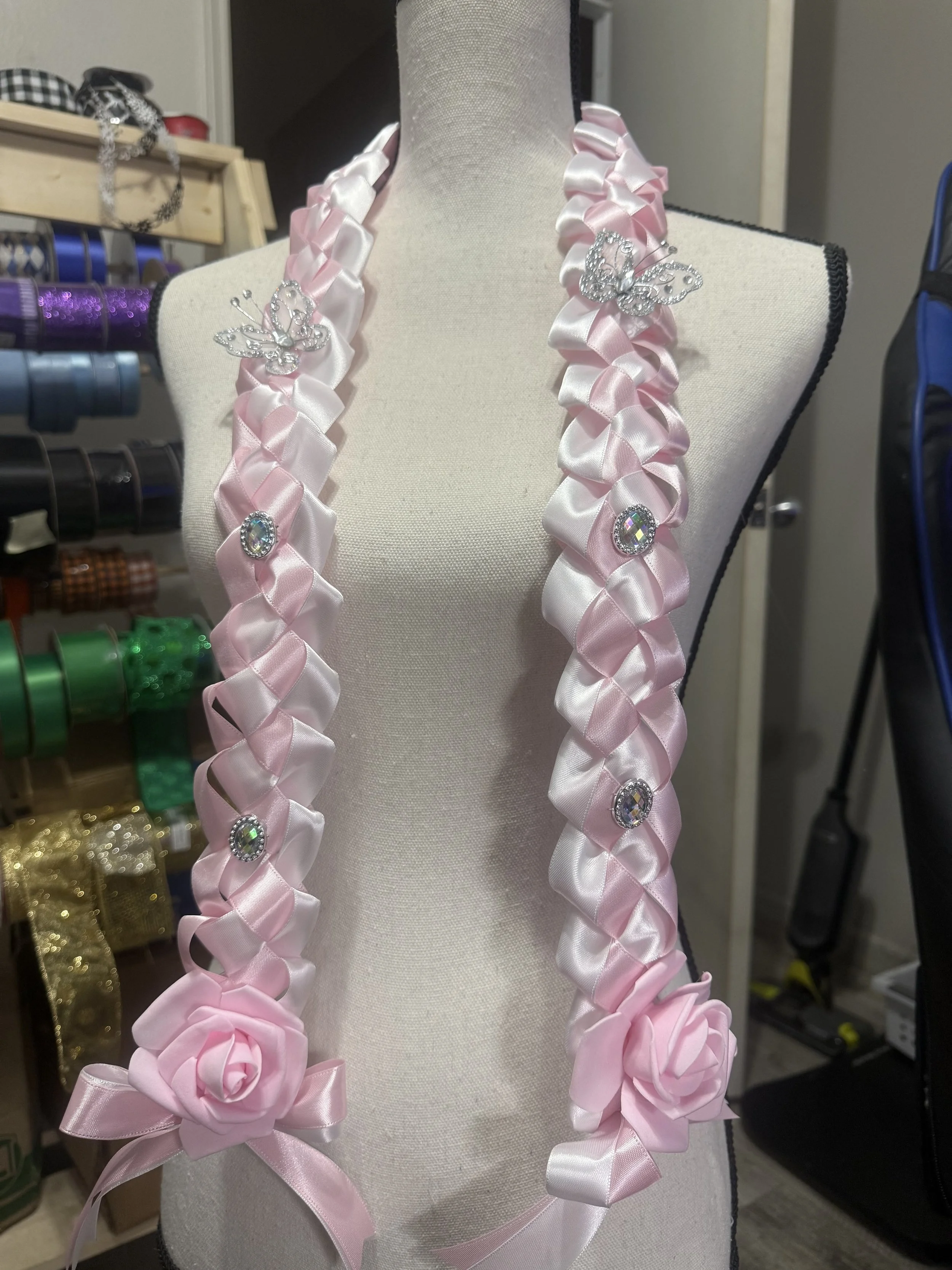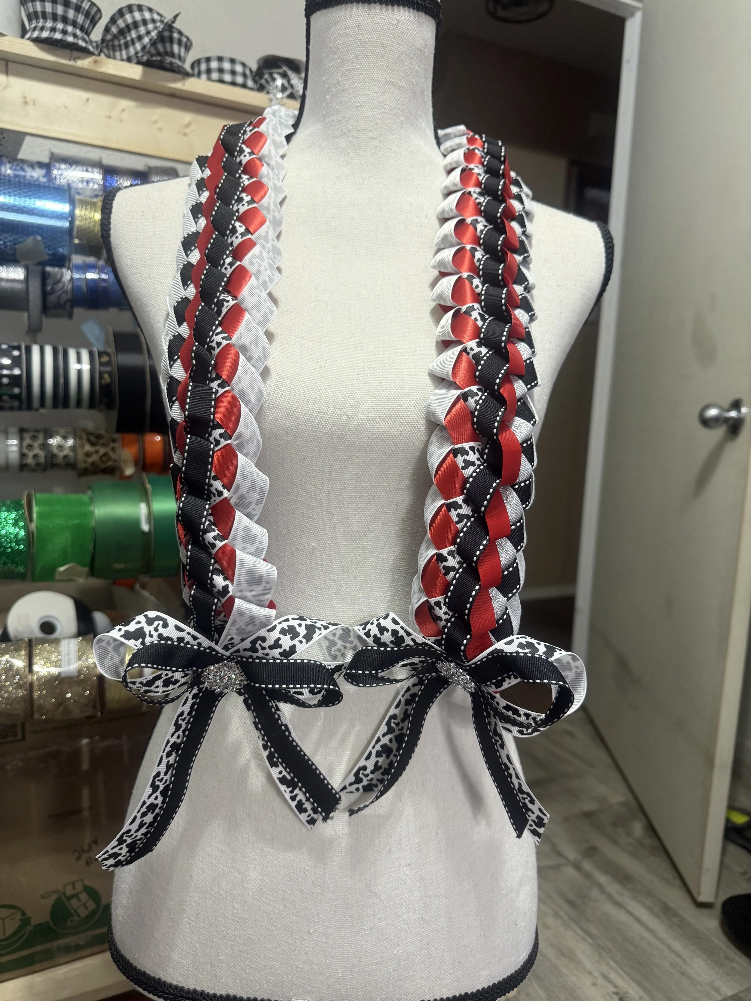 Senior Leiz are an exquisite way to honor your high school or college grad! Available in Single and Double military braid, I will then add custom cutouts to showcase achievements, future plans, or any unique designs you’d like! I’ve even seen some done in complete themes of favorite childhood movies. Base price includes Braid, Bling accents, 2 cutouts on Single/ 3 on Double. Add more cutouts for $2 per cutout!