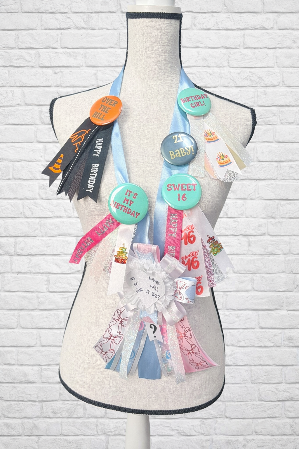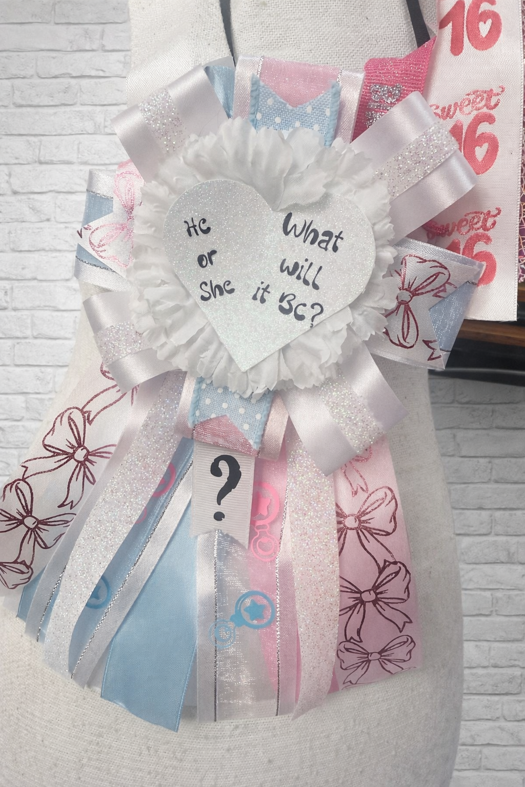 Gender Reveal Pinz- $25 your family can share the gender of your baby-to-come and I will design a pin to help reveal your special news! The “pull tab” is hidden inside and will reveal a hidden ribbon with the surprise!